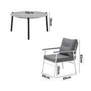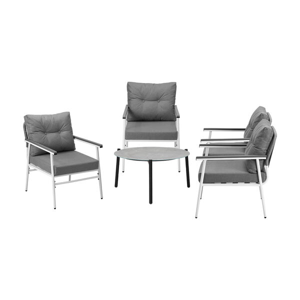 Outdoor Patio Set 5PC 70cm Table Grey and White Armchair
