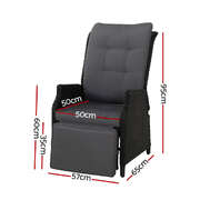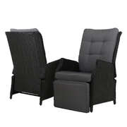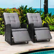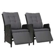 2Pc Recliner Chairs Sun Lounge Wicker Lounger Outdoor Black