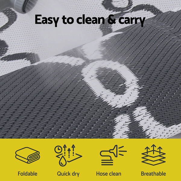 Upgrade your outdoor space with outdoor rug, featuring two stylish sides for instant patio refresh. Crafted from premium plastic straws with UV coating and heat-treated edges, it resists fading, water, and wear while staying soft underfoot. Lightweight yet durable, it's perfect for decks, pools, camping, or beach. Easy to clean (just hose off!) and available in multiple sizes. Ideal for gardens, beaches, RVs, and more, this rug blends practicality with boho charm for endless outdoor adventures.