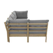 With a 5-piece sofa set configuration comprising a 4-seater sofa, a matching coffee table to suit your requirements, our outdoor sofa set is highly versatile and flexible in use. Apartment balcony or house patio, the outdoor sofa set simply makes its presence felt and enjoyed in more ways than one. Every piece of the outdoor sofa set is made with exacting standards. Starting with the strong wooden framework for the seats that enable heavy-duty usage and a matching coffee table that provides ample space for all your entertaining and relaxation paraphernalia. The attention to details is meticulous throughout with no hard edges to be felt anywhere. Not to be outdone, the sofa cushions are equally enticing with rich form padding for long-lasting comfort and enveloped in removable and washable covers for hassle-free cleaning and washing.