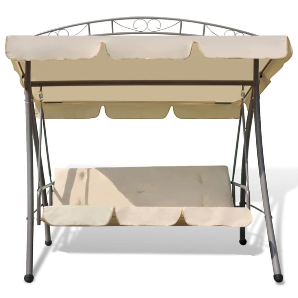 This quality convertible swing bench, including a large cushion and a canopy, will be a real eye-catcher to wherever it goes. It is a perfect choice for relaxation, or to have fun with your families in the garden, backyard or balcony. The powder-coated steel frames bring super stability and ensure the swing bench a long service life and excellent durability. The soft seat and back cushion, made of anti-fade and waterproof polyester, will undoubtedly offer optimal seating comfort. The swing bench for two persons provides shade from the sun with its large canopy. And you will enjoy swaying on the bench with the summer breeze. Moreover, this bench can be converted into a cosy bed for you to lie on. Delivery includes 1 x swing bench, 1 x cushion and 1 x canopy.