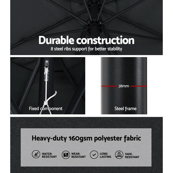 Soak up the sun, while staying cool under our Instahut centre post umbrella. Its steel supports an Octagon UV50+ canopy, ideal for the peak of summer. Made of water-resistant and wear-resistant polyester, it stands up to all sunny adventures. A water-fillable, portable base ensures beach-to-backyard versatility, while the washable canopy ensures freshness. Sunshine and shade, harmoniously blended for your summer escapades.
