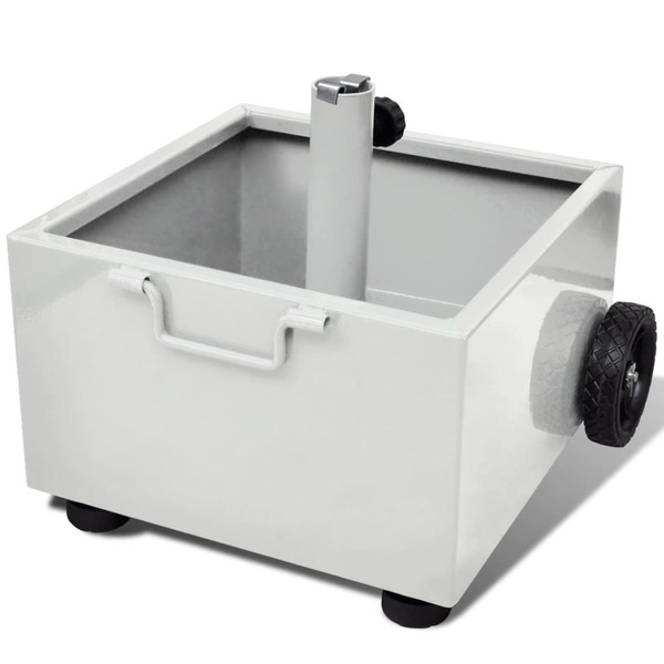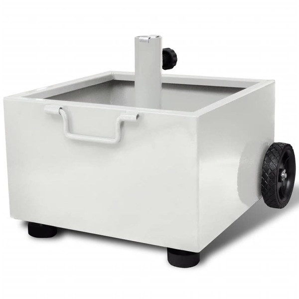 This distinctive parasol stand, with a total weight of 12.5 kg, perfectly serves as a firm and sturdy base for holding your parasol or umbrella. Its durable metal construction ensures a long-term service life. Four supporting feet increase the stability. What is more, it can also be a unique plant pot for plants or flowers. Two 6″castors and one handle make it easy for you to move the stand around without effort. The holder is suitable for umbrellas with a tube diameter ranging from 25 mm to 56 mm. The holder tube is equipped with an adjusting knob and two metal clips, so the stand can keep the parasol fastened tight and straight. It will be easy to assemble with mounting accessories included.