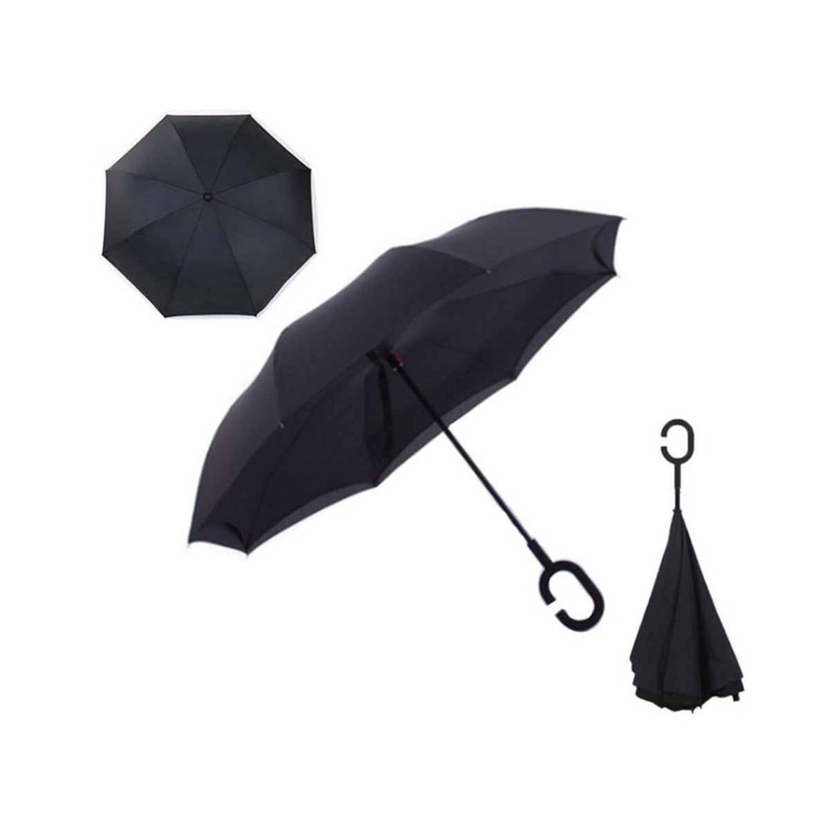 Windproof Double Layered Hands Free Folding Upside-Down Umbrella
