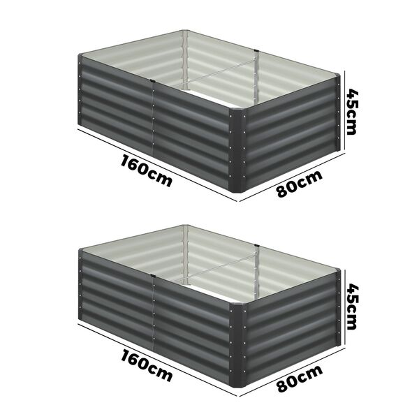 Pack of 4 Heavy-Duty Galvanised Garden Beds 160x80x45cm