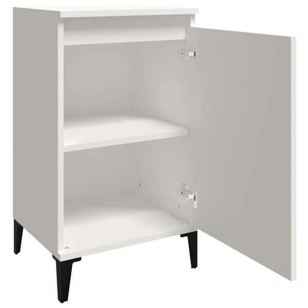 These trendy bedside cabinets, featuring a sleek and classic design, are meant to upgrade your interior to the next level. Durable material: The engineered wood is of exceptional quality with smooth surface and also features strength, stability and resistance to moisture.Ample storage space: The nightstand has 2 compartments with a door, providing ample space to keep your magazines, books, remote controls and other small items well organised and within reach.Metal legs: The metal legs add a modern and calm style to your interior while ensuring stability.Sturdy top: The sturdy top of the side table is ideal for displaying decorative objects, photo frames and potted plants.Easy-to-clean surface: The side cabinet is easy to clean with a damp cloth. Warning:To prevent it being overturned, this product must be used with the provided wall attachment device. Good to know:To make assembly as easy as possible, each product is delivered with a manual.