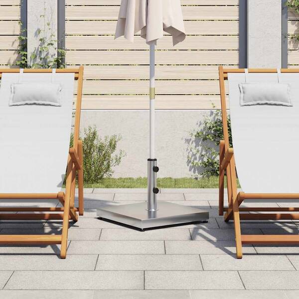 This parasol base offers a sturdy and reliable foundation to ensure your umbrella remains stable and upright. Strong and stable base: This umbrella base features a durable stainless steel shell filled with concrete, ensuring exceptional stability to keep your parasol securely in place and prevent it from tipping over, even in windy conditions.Easy to install: This parasol stand has a tightening knob for securing your umbrella to the base more firmly.Compatible with multiple pole sizes: This umbrella stand comes with 3 pole adaptors, allowing it to fit umbrella poles with a diameter of 32 mm, 38 mm and 48 mm.