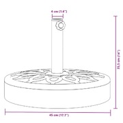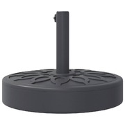 This parasol base offers a sturdy and reliable foundation to ensure your umbrella remains stable and upright. Strong and stable base: This parasol base features a durable plastic shell filled with concrete, ensuring exceptional stability to keep your parasol securely in place and prevent it from tipping over, even in windy conditions.Easy to install: This umbrella base has a tightening knob for securing your umbrella to the base more firmly.Compatible with multiple pole sizes: This umbrella base comes with 2 pole adaptors, allowing it to fit umbrella poles with a diameter of 38 and 48 mm.Beautiful circle pattern: Designed with circle patterns, this parasol holder brings a touch of timeless elegance to your outdoor area.