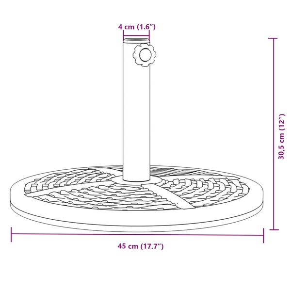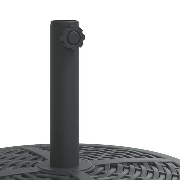 This parasol base offers a sturdy and reliable foundation to ensure your umbrella remains stable and upright. Strong and stable base: This parasol base features a durable plastic shell filled with concrete, ensuring exceptional stability to keep your parasol securely in place and prevent it from tipping over, even in windy conditions.Easy to install: This umbrella base has a tightening knob for securing your umbrella to the base more firmly.Compatible with multiple pole sizes: This umbrella base comes with 2 pole adaptors, allowing it to fit umbrella poles with a diameter of 38 and 48 mm.Beautiful rattan pattern: Designed with rattan patterns, this parasol holder brings a touch of timeless elegance to your outdoor area.