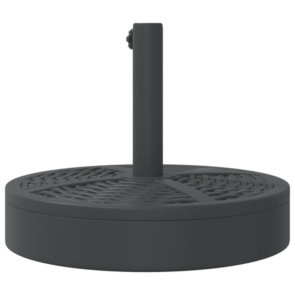 This parasol base offers a sturdy and reliable foundation to ensure your umbrella remains stable and upright. Strong and stable base: This parasol base features a durable plastic shell filled with concrete, ensuring exceptional stability to keep your parasol securely in place and prevent it from tipping over, even in windy conditions.Easy to install: This umbrella base has a tightening knob for securing your umbrella to the base more firmly.Compatible with multiple pole sizes: This umbrella base comes with 2 pole adaptors, allowing it to fit umbrella poles with a diameter of 38 and 48 mm.Beautiful rattan pattern: Designed with rattan patterns, this parasol holder brings a touch of timeless elegance to your outdoor area.