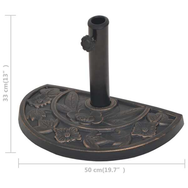 This highly decorative parasol base is made of weather-resistant resin but looks like it's been cast out of bronze. It has a locking bolt to keep the umbrella's pole in place in the 57 mm tube. Two adapters are included, making it suitable for parasol poles with diameters of 38 and 48 mm. This durable umbrella stand will make a decorative as well as practical addition to your outdoor living space thanks to its striking design!
