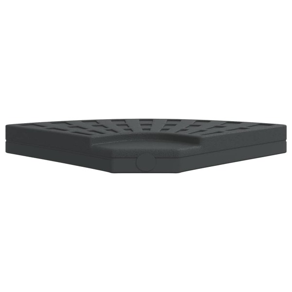 This parasol base weight offers a sturdy and reliable foundation to ensure your umbrella remains stable and upright. Strong and stable base: This parasol base weight features a durable polyethene (PE) shell filled with concrete, ensuring exceptional stability to keep your parasol securely in place and prevent it from tipping over, even in windy conditions.Easy movement: This parasol base comes with a handle for easy carrying, making it convenient to move to any spot you want.Simple to set up: This umbrella base weight effortlessly slots into a cross stand featured on cantilever parasols.Beautiful design: This parasol base weight has a textured fan design that blends well with your garden furniture. Good to know:The quarter is just 1 piece in a set of 4. You will need to order 4 quarters to make up a complete base.