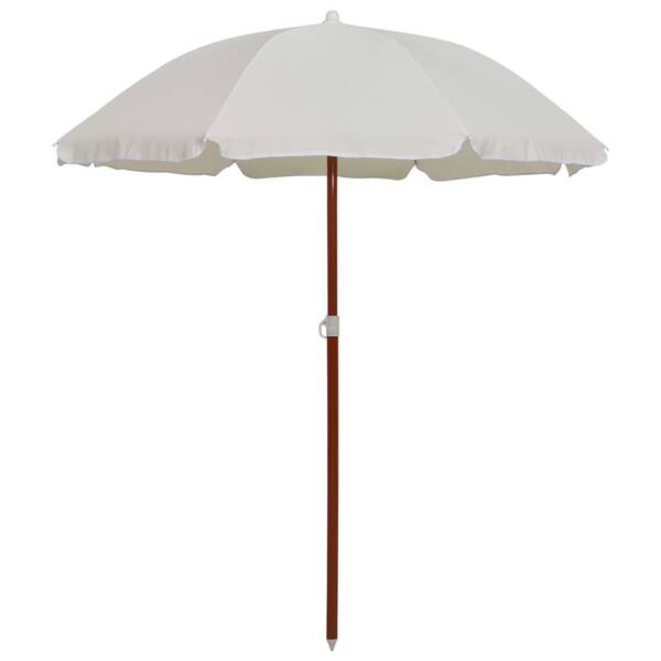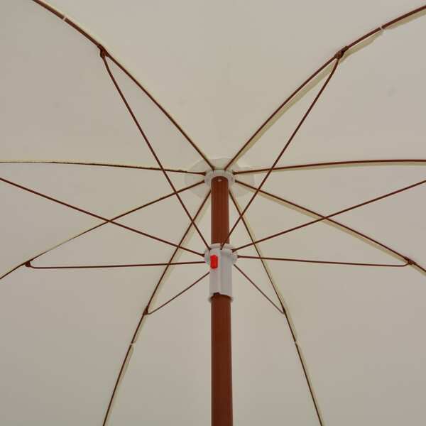 This elegant garden parasol protects you from the sun's harmful UV rays and creates perfect shade as well. It is made of UV protective and anti-fade polyester. The parasol cover provides you with optimum protection against the sun and is easy to clean. The strong steel pole with wood-colour coating and 8 ribs makes the parasol stable and durable. Please note that we recommend treating the umbrella fabric with a waterproofing spray if it is likely to be used during heavy rainfall.