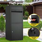 Heavy-duty weatherproof steel frame withstands Aussie elements. Features 2 slots drop design for mail + parcels with 90° large opening for bulky items. Secured locked cabinet includes 2 keys for safe collection. Large storage capacity with soft bottom cushion (2cm thick) protecting deliveries. Ideal for driveways or porches.