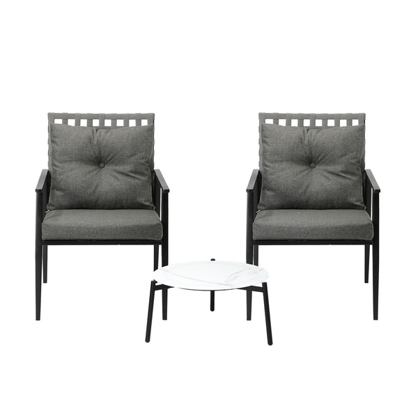 3pcs Outdoor Patio Set 50cm Marble Table Rattan Chairs