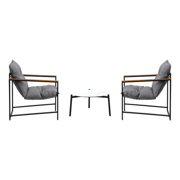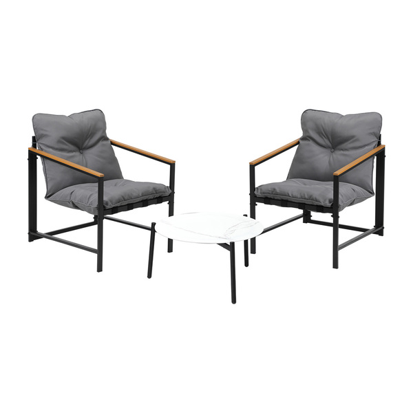 3PC Outdoor Patio Set 50CM Round White Marble Table