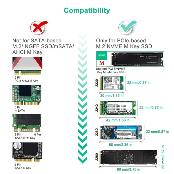 It Supports NVMe PCIe M.2 SSD with M Key 2280, 2260, 2242, 2230(SATA-based NGFF M.2 SSD are NOT supported).
