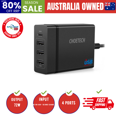 4 ports pump out 72W of power, enabling simultaneous multi-device charging.