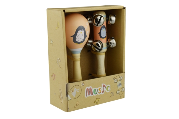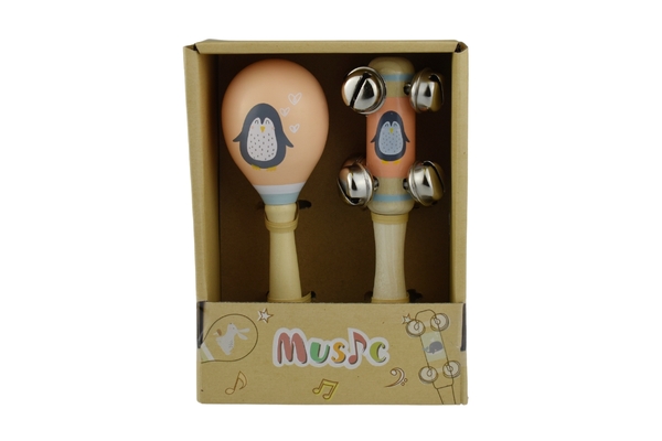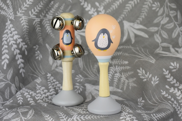 Penguin Wooden Maraca & Bell Stick Set