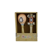 A beautifully finished wooden bell stick and maraca 2 piece musical set featuring a Penguin design from Calm & Breezy by Kaper Kidz. These musical instruments are perfect for babies and small children as they encourage developing hand-eye coordination as well as building gripping and arm muscles. As small children shake these toys, they play a gentle sound which is both soothing and encouraging. Each wooden 2 piece musical Set from Calm & Breezy by Kaper Kidz is made from timber and finished to the highest quality and painted in child safe, non toxic paint.