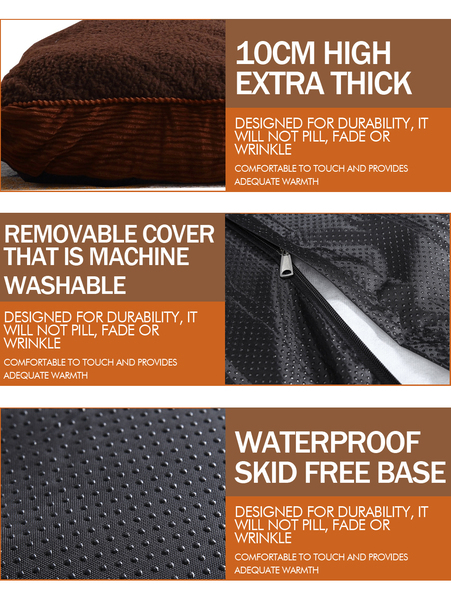 Pet Bed Mattress Dog Cat Pad Cushion Soft Warm Washable L Brown