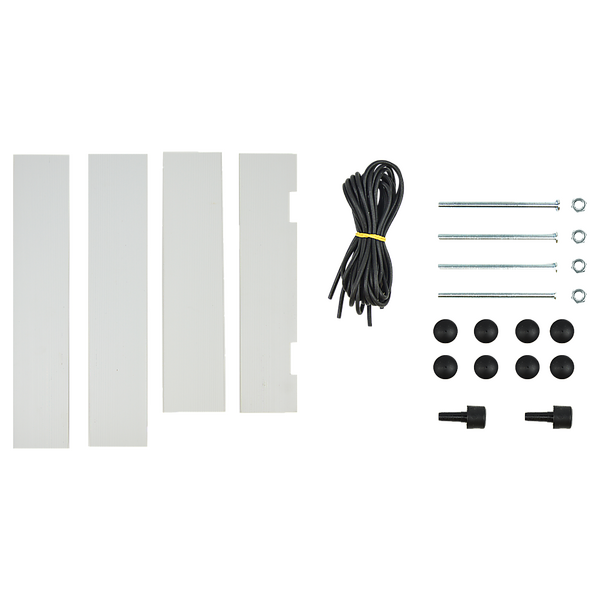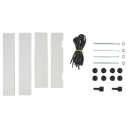 Contents: 2 strings, 4 baffles, 4 screws and caps, 1 large two-way locking pet door and panel