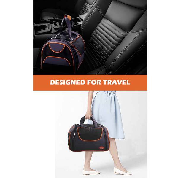 Please Note: This listing is for a grey and black bag with orange trimmings. Please refer to main image. Also, even though this is a larger sized bag, please refer to the dimensions for a better gauge if your pet will fit.