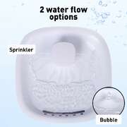 Switch from a Gentle bubble water flow to a Free-fall shower water flow based on your pet\'s preference. And an inclined tray design helps protect your pet\'s cervical spine and allows pets to drink without getting their chin wet.