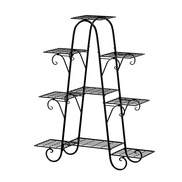 Plant Stand 9 Tier Metal Flower Pot Shelf Black