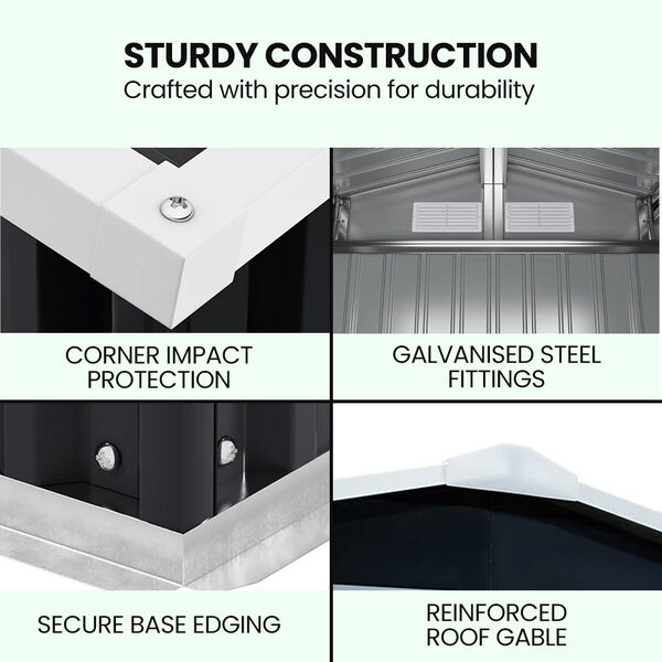 Optimise your outdoor storage with the 2.58 x 2.07 x 2.02m Galvanised Garden Shed, perfectly suited for storing gardening tools, equipment, and other essentials. Made from high-quality galvanised steel, this durable shed offers excellent corrosion resistance and withstands various weather conditions effortlessly.