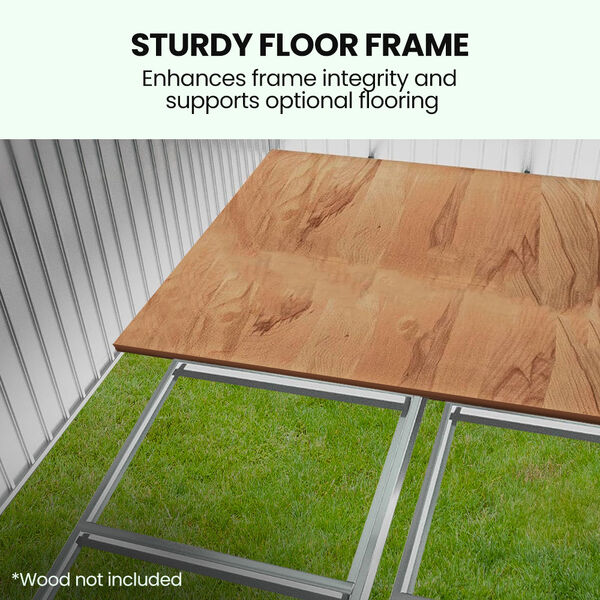 Front and rear air vents ensure the interior is well-ventilated, helping to reduce mould and any build-up of fumes. Smooth sliding doors offer wide, easy access, comfortably accommodating large items. The bonus floor frame (RRP $139.90) adds structural strength and can also support optional flooring on top of it.
