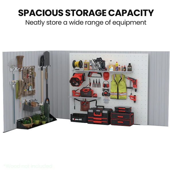The Storage Shed provides a spacious solution for keeping your outdoor area and equipment organised and protected. Designed to last, it offers a dependable, efficient storage option, perfect for various storage needs.