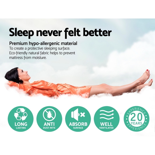 Pamper you and your family with our Giselle bedding mattress, a mattress that you will not regret purchasing. Featuring high density foam, it is there to make sure that you and your family will have a comfortable sleep all night. Cooperating with hypo - allergic material, dust mite and mould resistant, it will provide you a long lasting and cleaner mattress compared to what you have previously experienced.