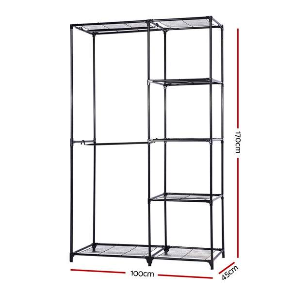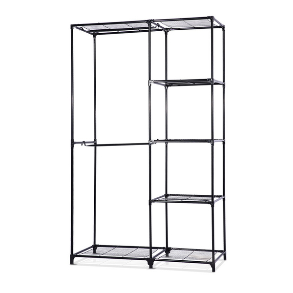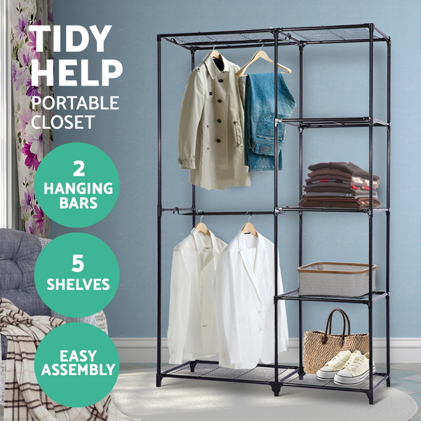Portable Closet Organizer Storage Clothes Hanger Rail Garment Shelf Rack Black