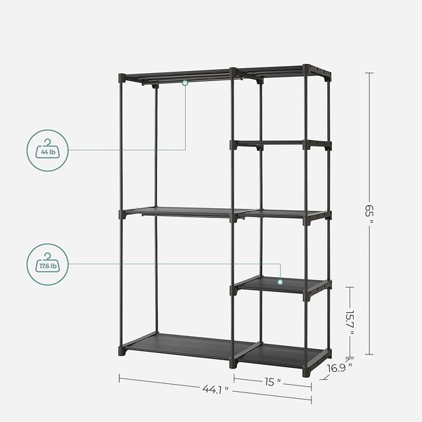 - All-Round Strength: Supported by 0.6 dia. metal tubes, each shelf is strong enough to hold up to 17 lbs of clothing or accessories. Strengthened plastic connectors also add to the strength