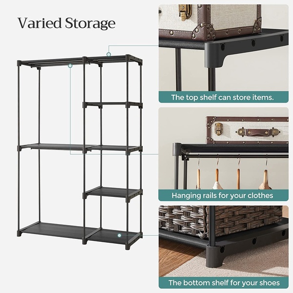 - Embrace Organization: Not ready to cut down on your clothes but don't know how to keep them in order? It's time to invite this rack in. Its varied storage sections help you keep your clothes organized
