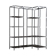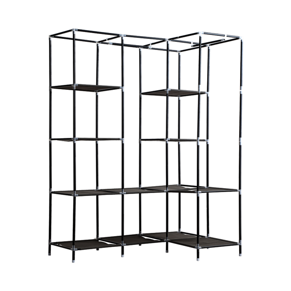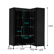 Made from high-quality non-woven fabric and metal. The metal frame provides great stability and steadiness. Non-woven fabric provides extra strength to hold all your stuff. Equipped with high-quality connectors for long term usage. Its creative L-shaped design fits well in any corner. Highly spacious from inside to store all your essential belonging in one place. Access your clothes hassle-free with its roll-up door, very easy to open and close. Assemble the wardrobe with simple instructions. Fold and store when not in use.