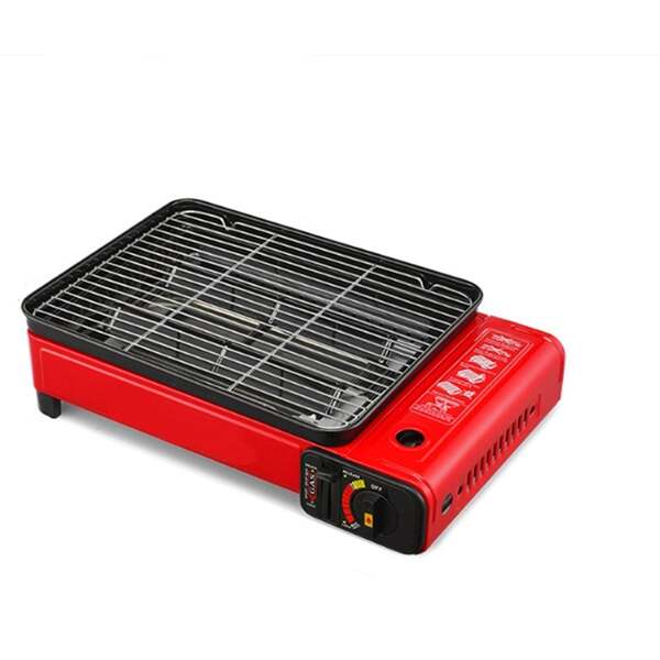 Portable Gas Stove Burner Bbq Camping Gas Cooker With Non Stick Plate Orange