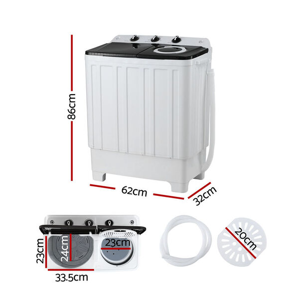 Portable Twin Tub Washing Machine 7kg Compact Laundry Washer White