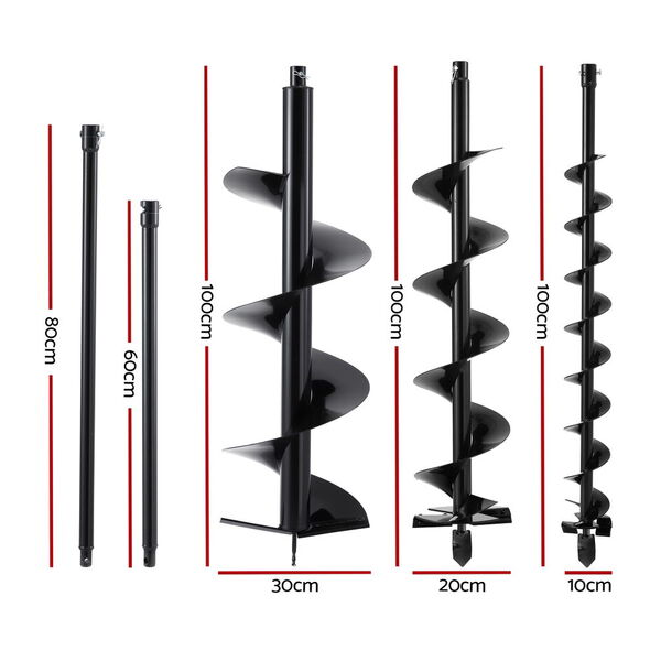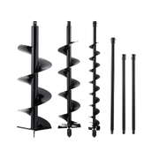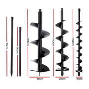 Post Hole Digger Auger Drill Bit Set 100mm 200mm 300mm Carbon Steel Black
