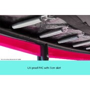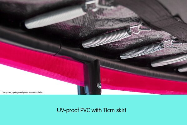 The pad is fitted with an 11cm PVC skirt which hangs down over the frame. This assists in locating the padding and also improves the appearance of the trampoline.