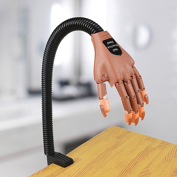 Whether you're a professional manicurist who wants to hone her skills or just want to learn to do a salon-worthy job on your own nails, this manicure practice trainer by Randy Travis Machinery is the perfect solution. Crafted from sturdy, yet flexible ABS, this lifelike hand with its spring-powered, flexible arm' provides you with a realistic scenario for hours of practice. Just fasten it to your benchtop or tabletop with the clamp and get started with your first manicure.