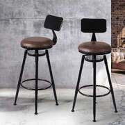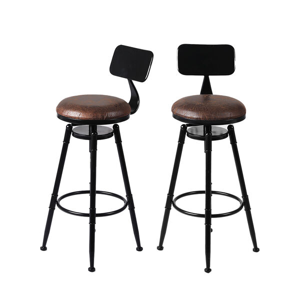 Premium 2x Bar Stool Kitchen Wooden PU - Adjustable Height Classic