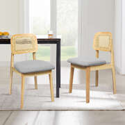 Add a dash of style and comfort to your dining space with the Rattan Dining Chairs Set of 2! These boho wicker chairs feature a chic cane back and sturdy wooden frame, bringing a fresh, modern touch to any room. The eco-friendly linen fabric is soft, breathable, and durable, while the thick, high-density foam cushions keep you comfy for hours. Lightweight and easy to move, these chairs are perfect for your kitchen, dining room, or even as cozy boho accent chairs. Quick to assemble and even easier to love – make every meal a little more special!