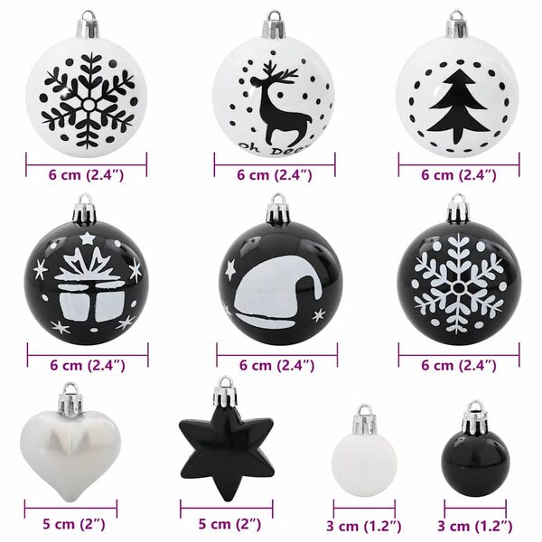 Premium Christmas Bauble Set 40 pcs Black and White - High Quality