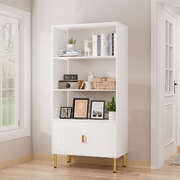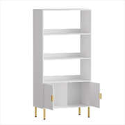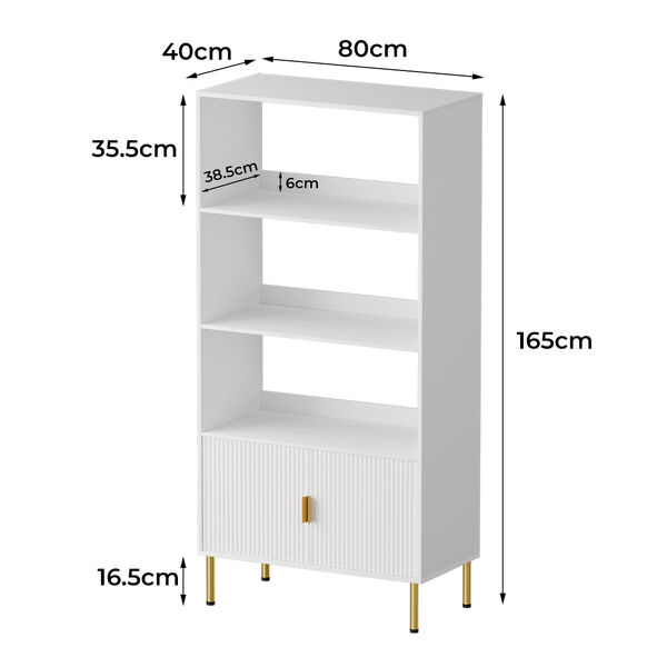 Enhance your home with this elegant 80x40x165cm white display storage shelf, featuring a modern design with gold metal legs and handles for a luxurious touch. The unit comes with three spacious open shelves, ideal for displaying your favorite books, decorative items, or everyday essentials. The lower cabinet with grooved doors provides additional concealed storage, helping you maintain a tidy and stylish living space. Designed with both aesthetics and practicality in mind, this versatile bookshelf with doors fits seamlessly into living rooms, bedrooms, or home offices, making it a must-have for those who appreciate both form and function.