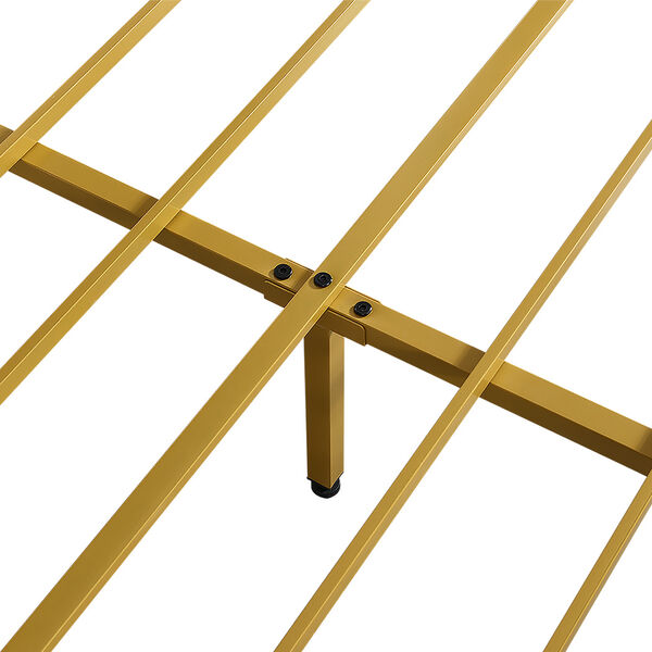 Crafted with high-quality materials, this bed frame is built to last, offering a sturdy and durable foundation for a restful sleep. Its elevated design allows for better air circulation and easy storage underneath, giving your room a spacious, open feel. The bed frame is equipped with metal support legs and metal slats for reinforced stability and long-lasting support.