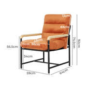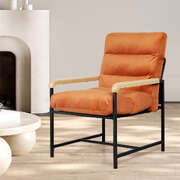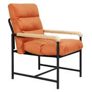 Premium Metal Framed Lounge Chair Velvet in Orange - High Back Support