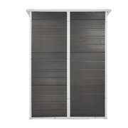 Constructed with a mix of aluminium and polypropylene materials, the versatile garden shed is designed to withstand the outdoor elements with utmost durability. The garden shed also enables good functionality with a sloped roof for hassle-free water drainage, lockable door (lock not included) for safekeeping, and a visible window for natural lighting too.