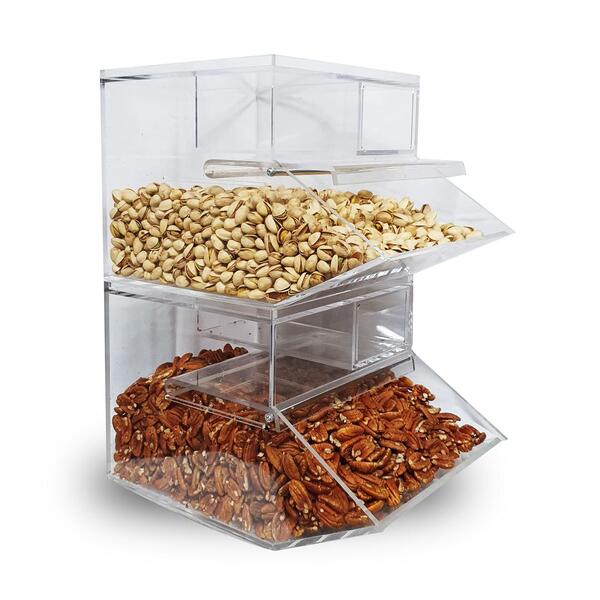 - Acrylic container has a capacity of 15L to hold several items like nuts, confectionery, dry goods and more!